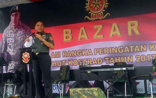 JAKARTA, Berita HUKUM - Panglima Komando Strategis Angkatan Darat (Kostrad) Letnan Jenderal TNI Edy Rahmayadi membuka Bazar Murah, dalam rangka memperingati HUT ke 56 Kostrad bagi seluruh prajurit Kostrad dan masyarakat umum dengan harga yang relatif murah dan terjangkau. Bazar Murah digelar di lapangan Markas Kostrad, Gambir, Jakarta Pusat, Rabu (8/3).