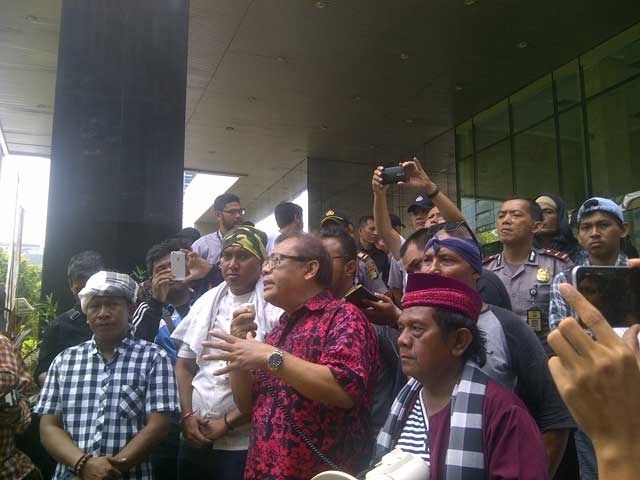 JAKARTA, Berita HUKUM - Ratusan massa di komandoi oleh aktivis senior Eggi Sudjana mendatangai kantor Komisi Pemberantasan Korupsi (KPK) di Jakarta, sesuai dengan rencana yang diungkapkan pada orasi di hadapan ribuan massa saat acara Rapat Akbar Masyarakat Jakarta Rapat Akbar Masyarakat Jakarta untuk Menyikapi Reklamasi dan Penggusuran, Rabu (20/4) lalu, di area Masjid Luar Batang, Penjaringan Jakarta Utara.