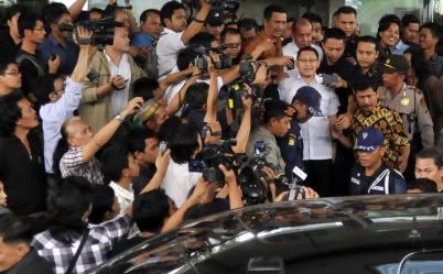 Anas menjalani pemeriksaan selama 3 jam lebih. Dengan mengenakan kemeja putih dan celana hitam dirinya didampingi Wakil Sekretaris Jenderal Demokrat Saan Mutopa dan Divisi Hukum Demokrat Denny Kailimang.