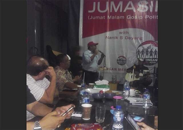 Begitulah ungkapannya dipekan terakhir bulan April tahun 2016, di salah satu pelataran kafe Wedang 200, Jl. Fatmawati Raya, Jakarta Selatan pada, Jumat (22/4), yang memang acap kali mengadakan tukar pikiran, sharing mengenai berbagai hal mengenai perjalanan demokrasi dan Politik Indonesia di Jumat Malam Gosip Politik (Jumasip) oleh Nanik S Deyang.