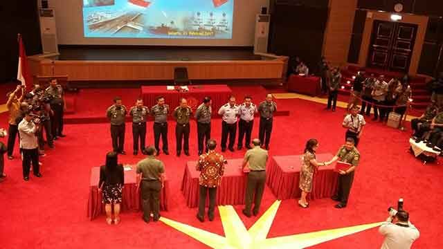 JAKARTA, Berita HUKUM - Sesuai dengan intruksi dan tindak lanjut dari Panglima TNI kepada para Kepala staf Angkatan dan Kasum TNI, melalui surat telegram No. ST/1496/2016 tanggal 13 Desember 2016 tentang perintah melaksanakan program dan anggaran tahun 2017, hari ini Markas Besar Tentara Nasional Indonesia (Mabes TNI) dan mitranya menandatangani Kontrak Pengadaan Barang dan Jasa secara Kolektif senilai Rp1,410 triliun. Penandatanganan tersebut disaksikan oleh Kasum TNI Laksdya TNI Dr. Didit Herdiawan, M.P.A., M.B.A. di Aula Gatot Subroto, Mabes TNI, Jakarta, Kamis (23/2).