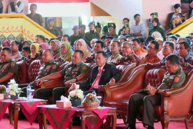 Turut hadir dalam acara tersebut antara lain, Kasad Jenderal TNI Mulyono, Asintel Panglima TNI Mayjen TNI Benny Indra Pujihastono, Asops Panglima TNI Mayjen TNI L. Pusung, Aster Panglima TNI Mayjen TNI Wiyarto, Pangdam I/BB Mayjen TNI Cucu Soemantri, Kapuspen TNI Mayjen TNI Wuryanto, S.Sos., Danrem 031/Wirabima Brijen TNI Abdul Karim dan Kapolda Riau Irjen Polisi Drs. Zulkarnain Adinegara serta Gubenur Provinsi Riau H. Arsyadjuliandi Rachman, Rektor Universitas Islam Negeri Sultan Syarif (UIN) Suska Riau Prof. DR. H. Munzir Hitami, M.A., Presedium Kahmi Riau Yulisman, S.SiI. dan Ketua Panitia Nasarudin S.H., M.H. Sedangkan Universitas Negeri Padang diantaranya, Gubernur Sumatera Barat Prof. DR. H. Irwan Prayitno, Ketua DPRD Sumbar Hendra Irwan Rahim dan Rektor UNP Ganefri.(TNI/bh/sya) |