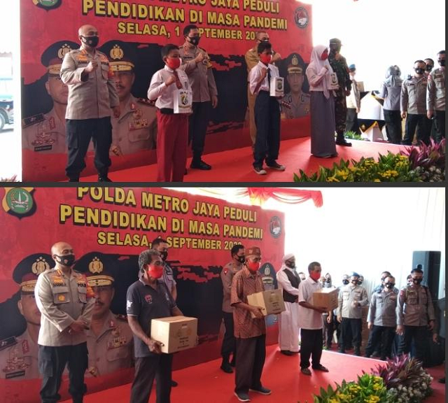 "Ini keperdulian kami di masa pandemi ini sehingga kami dari Polda Metro mengajak Kapolres hari ini secara serentak dilaksanakan dalam rangka perduli pendidikan kami berikan bantuan masyarakat khususnya ke adik-adik SD, SMP, SMA yang membutuhkan sebagai sarana prasarana pendidikan," kata Nana dalam sambutanya di Polsek Pakuhaji, Tangerang, Selasa (1/9)