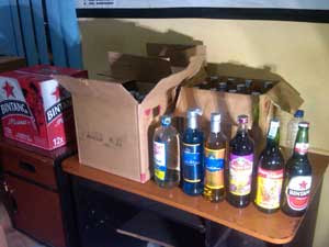 Dari tangan Ambo Sere petugas menyita 16 kotak miras berbagai jenis seperti bir, topi miring, anggur merah, newport, anggur koleson total sekita 190 botol.