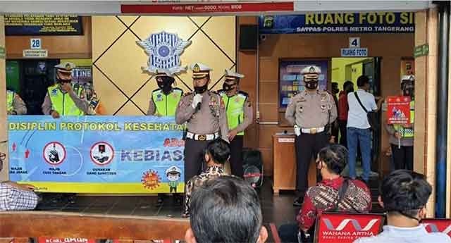 TANGERANG, Berita HUKUM - Satuan Lalu Lintas Polres Metro Tangerang Kota mengimbau masyarakat untuk senantiasa mematuhi protokol kesehatan (prokes) pada masa Pandemi Covid-19 saat ini.