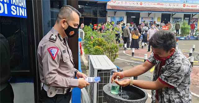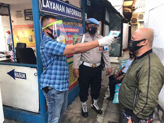 "Para pemohon SIM yang datang ke tempat kita, saat awal di pintu masuk diperiksa dulu suhunya oleh petugas kami dengan thermo gun, lalu kami arahkan ke tempat cuci tangan," ujarnya.