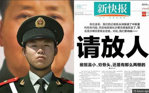 Lewat beritanya, The New Express yang terbit di Guangzhou, Cina selatan, meminta pembebasan Chen Yongzhou yang ditahan sejak pekan lalu.