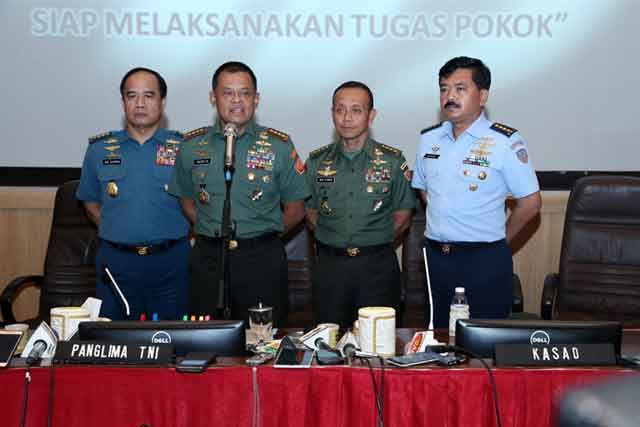 Hal tersebut dikatakan Panglima TNI Jenderal TNI Gatot Nurmantyo didampingi Kasad Jenderal TNI Mulyono, Kasal Laksamana TNI Ade Supandi dan Kasau Marsekal TNI Hadi Tjahjanto dihadapan awak media massa, usai penutupan Rapim TNI Tahun 2017 di Aula Mabes TNI, Cilangkap, Jakarta Timur, Kamis (19/1).