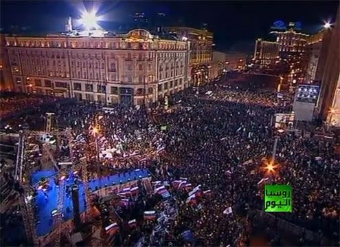 Kemenangan ini disambut puluhan ribu pendukung Putin yang berkumpul di luar Kremlin. Seakan tidak menghiruakan udara dingin yang sempat mencapai minus 36 derajat Celsius, para pendukung ini mengibarkan bendera dan poster yang berisikan dukungan terhadap mantan pemimpin dinas intelejen Rusia ini.