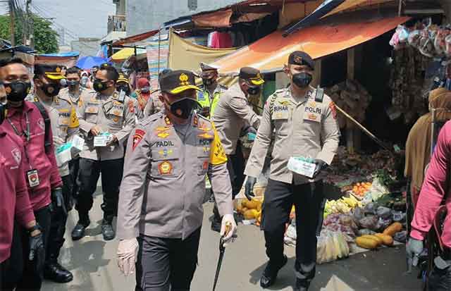 "Ke Pasar-pasar Rakyat, seluruh Polsek gabungan dengan teman-teman dari Kodam Jaya dan Pemprov DKI Jakarta turun ke Pasar, tujuannya agar seluruh masyarakat sadar menggunakan masker guna memutus mata rantai penyebaran Covid-19," ujar Fadil.